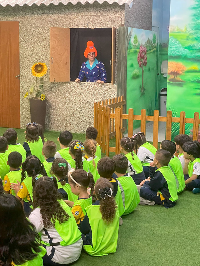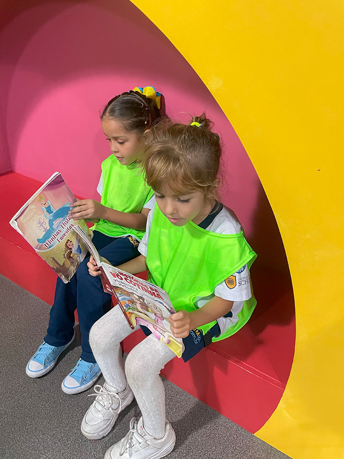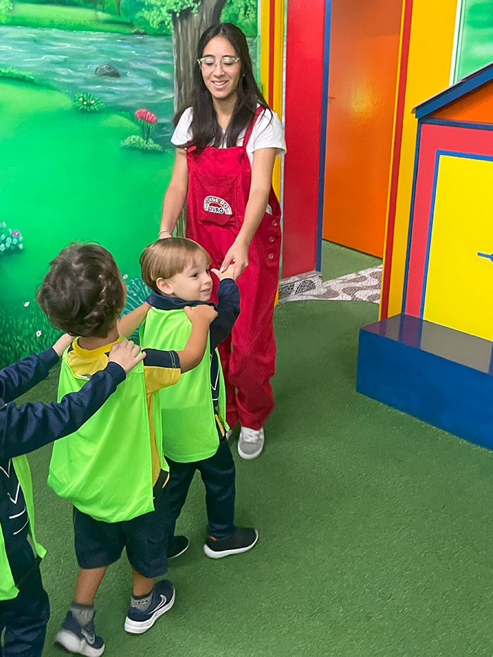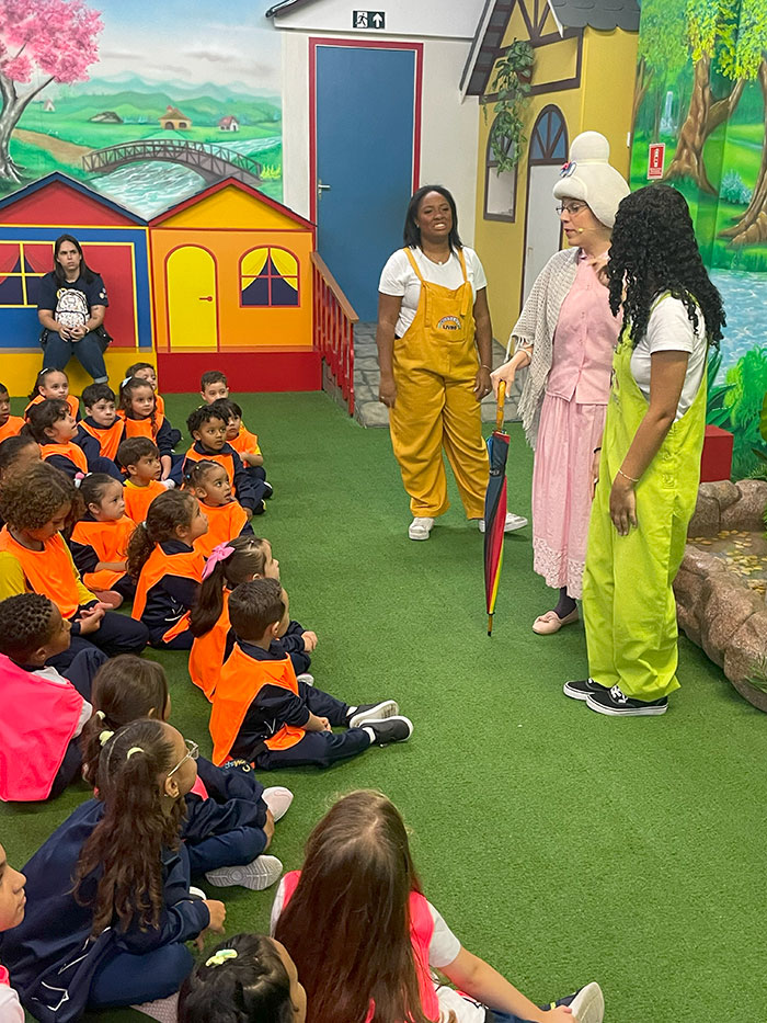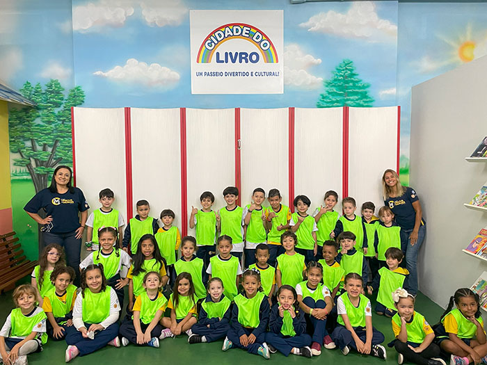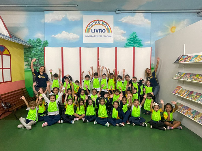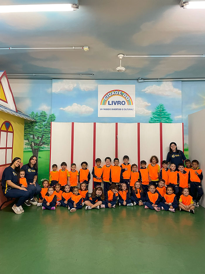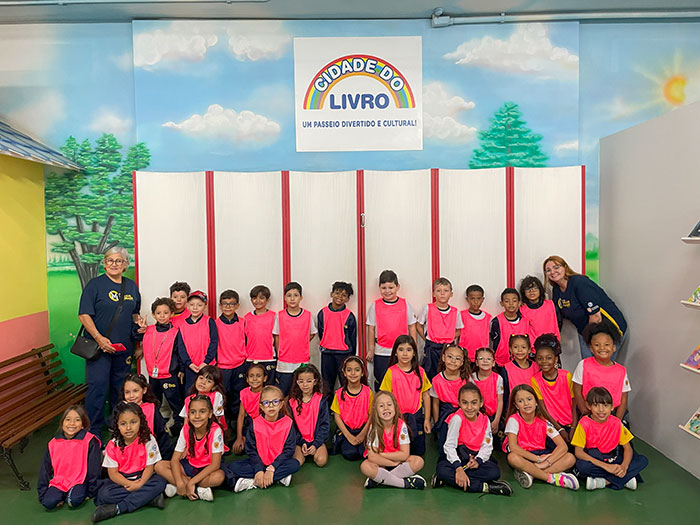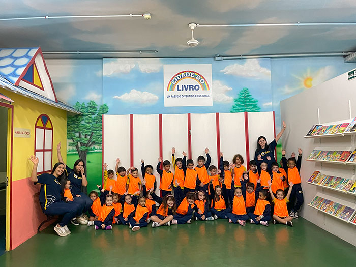 Nossos pequenos exploradores da Educação Infantil e do 1º ano viveram um dia inesquecível na Cidade do Livro – Projeto Kids! 💛 Foi um passeio recheado de descobertas, sorrisos e muita fantasia!