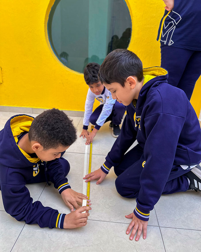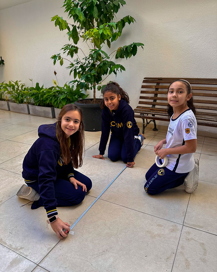 Na aula de Matemática, nossos alunos embarcaram em uma missão curiosa: quantas crianças cabem em pé dentro de um metro quadrado? 🤔